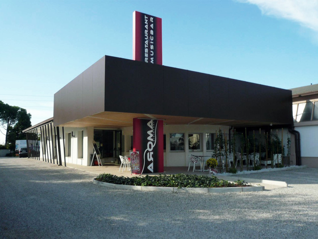 Il lavoro svolto per il Ristorante Aroma 19, ex Trattoria bar “al Bocciodromo” di Monastier di Treviso, ci ha visti coinvolti nello sviluppo di una nuova immagine, più moderna e innovativa, per il Ristorante, con l’obiettivo di dare una nuova veste alla struttura e un impatto più giovane e fresco.